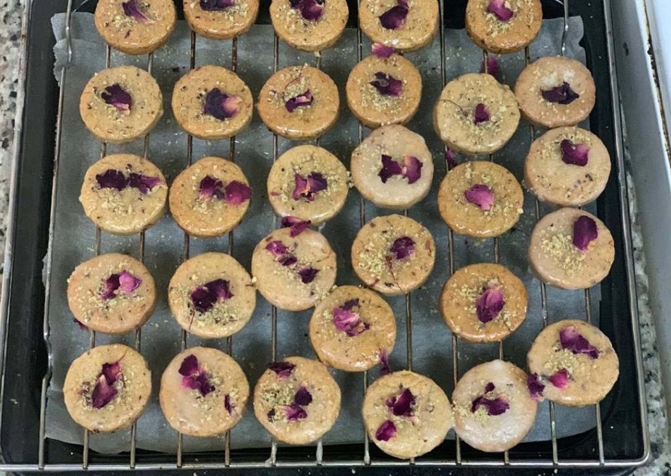 lined with baking paper. - Immediately garnish with dried rose petals and crushed pistachios. Let them dry till the sugar glaze hardens.