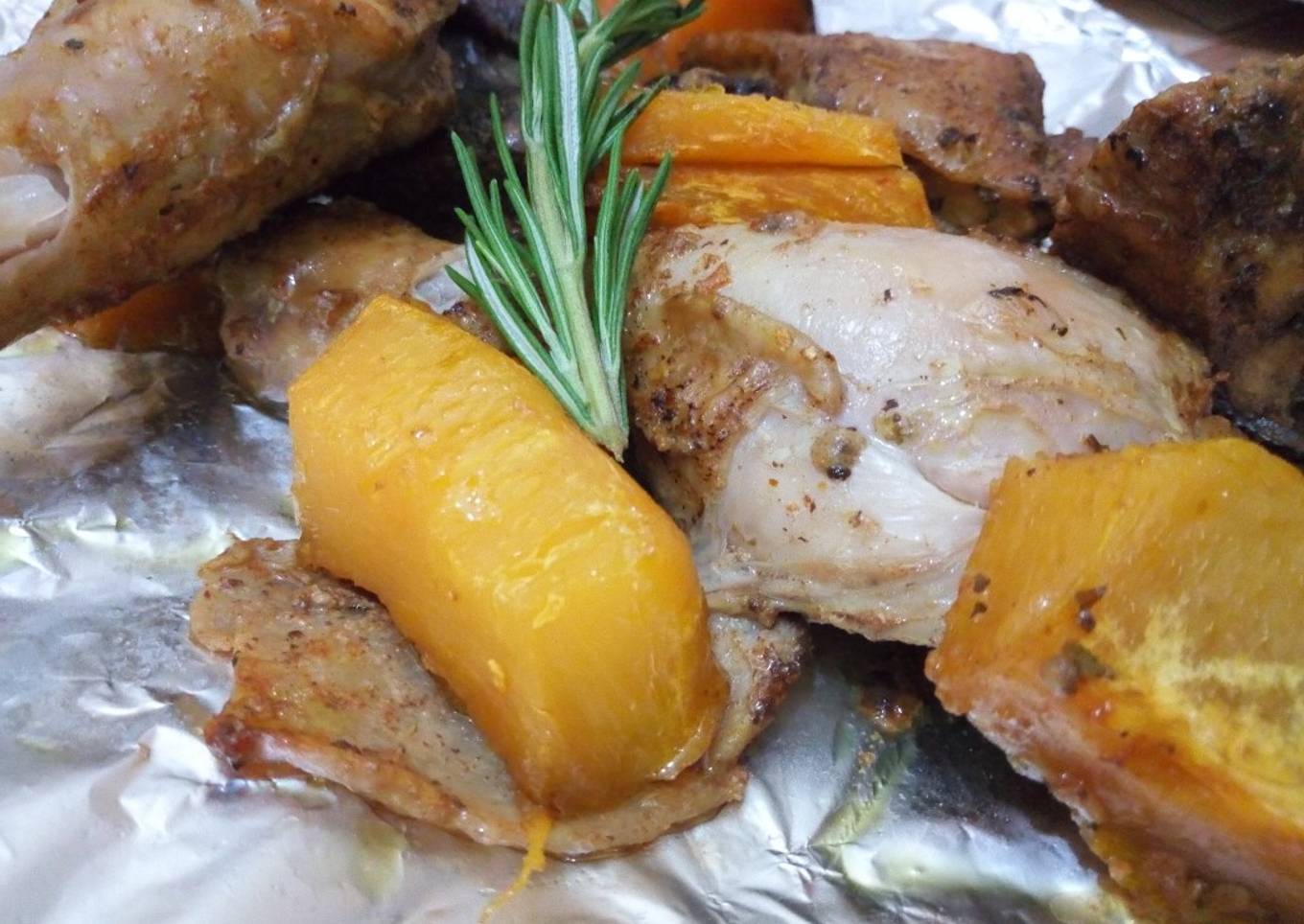 - Lay your chicken together with its marinade....and your butternut...on the tray
