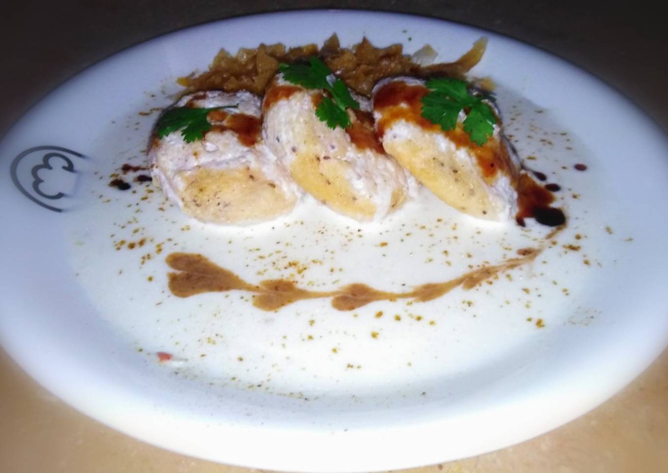 - Take dish and spread some prepared Youghrt then set bhalle on top.