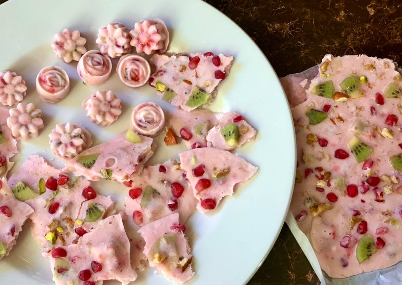 Frozen Fruit yogurt bark 🥝🍓🥥