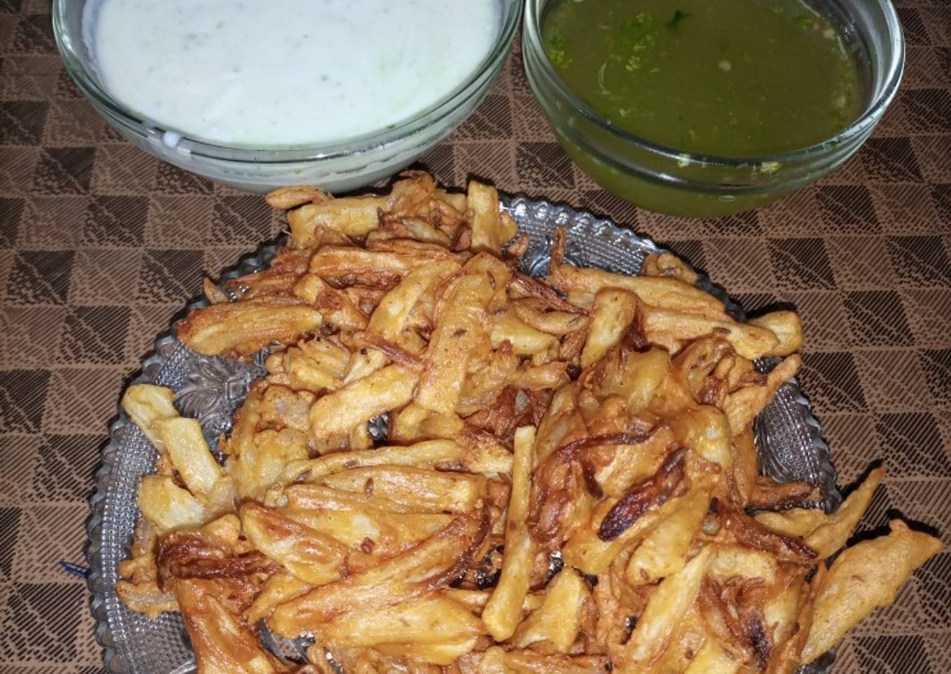 - Pakoras are ready for serve. Serve then with both tasty mint yoghurt & Green vinegar chutney.