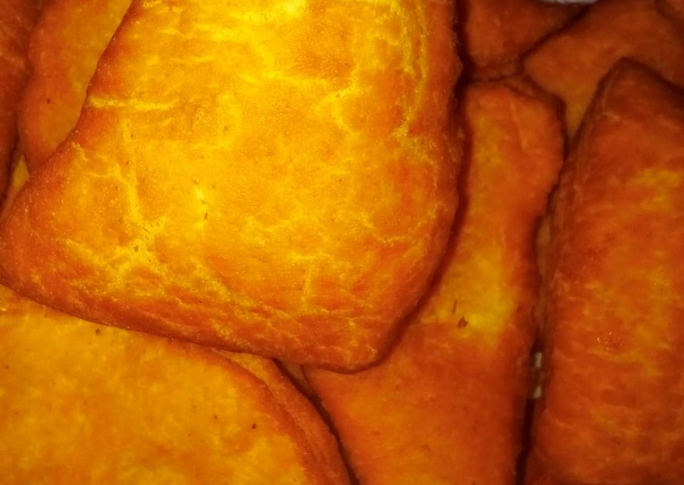 - Heat oil in frying pan. It should not be very hot. Meanwhile divide dough into 4 parts. Take each ball and roll out, cut into shapes and fry in the oil both sides until golden brown. Do the same to the rest of the dough balls. Enjoy with tea