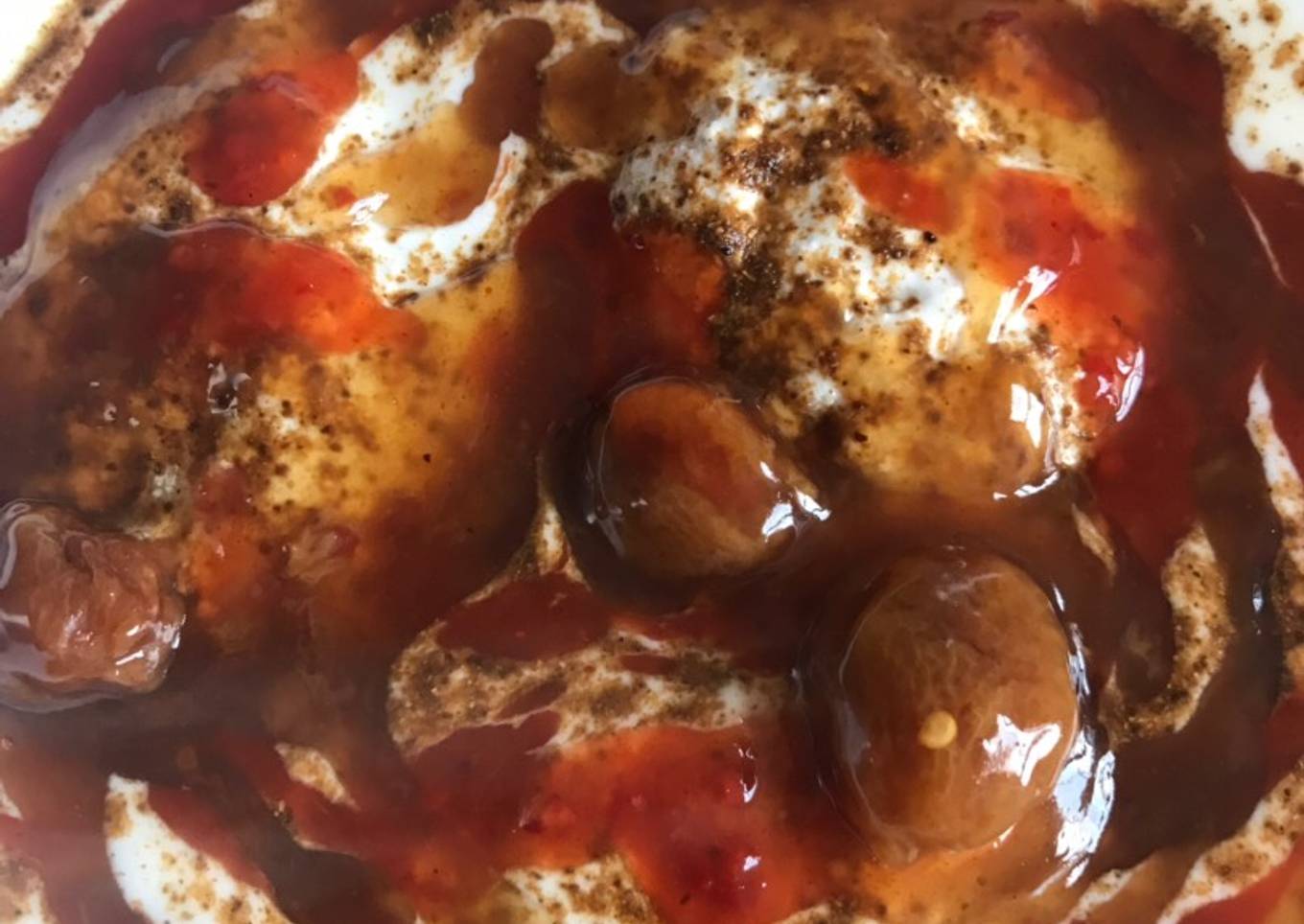 It's very famous pakistani street food with yogurt and lentils/ also called mash daal with two chatni/ sauce I also have make 1 sauce is called imli alobukhare ki catni/tamarind dry plums and it's really sweet bitter and spices and second sauce is chilli sauce I use is tha restaurant once you can buy on market but I'll try next time for you how to make at home tha second one😋