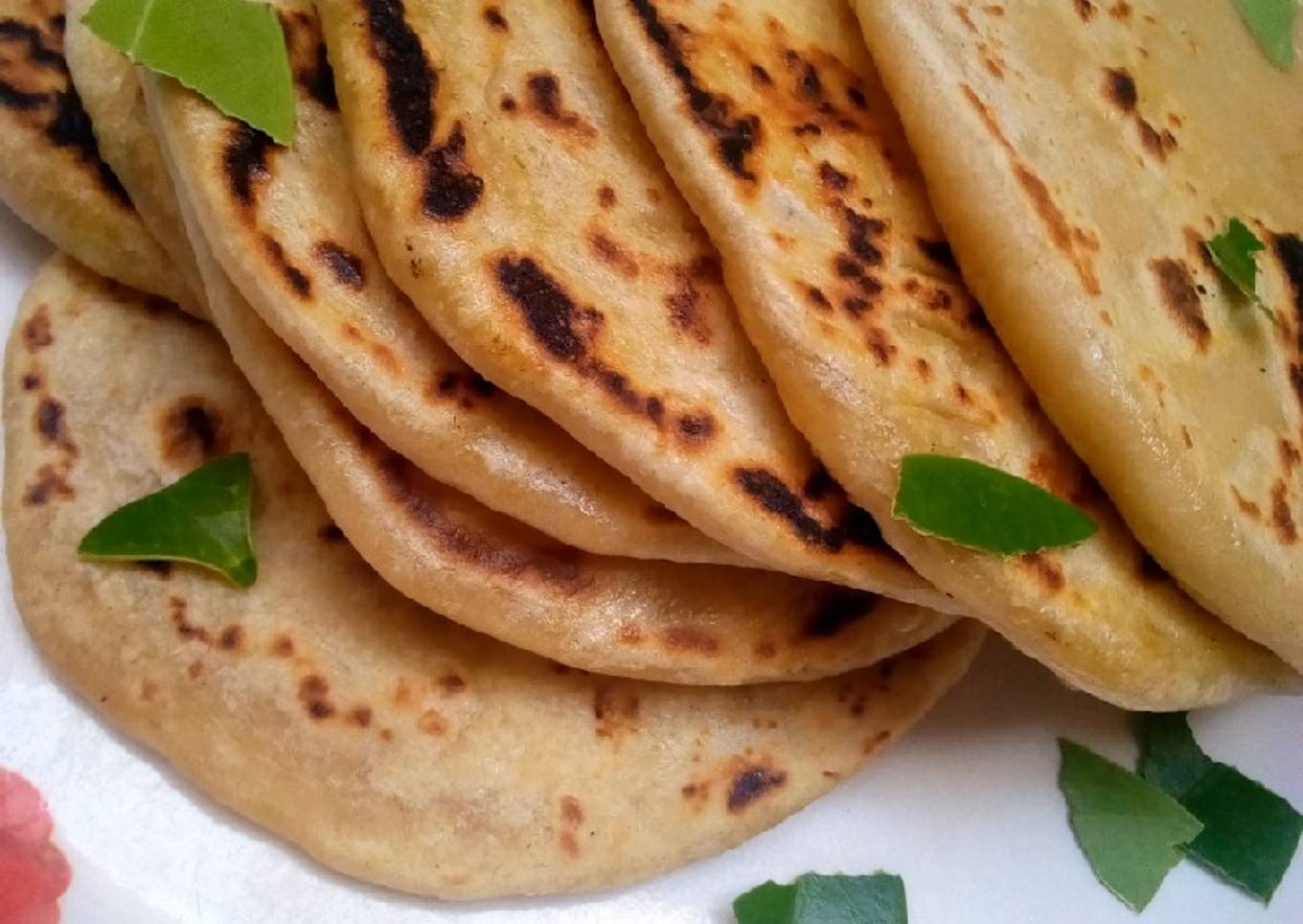 - Heat a pan and put ur roll dough,turn d other side once bottom is brown, remove when both sides are brown.Chop any garnish leaves of ur choice and spread.you can serve with egg sauce,stew or onion sauce.