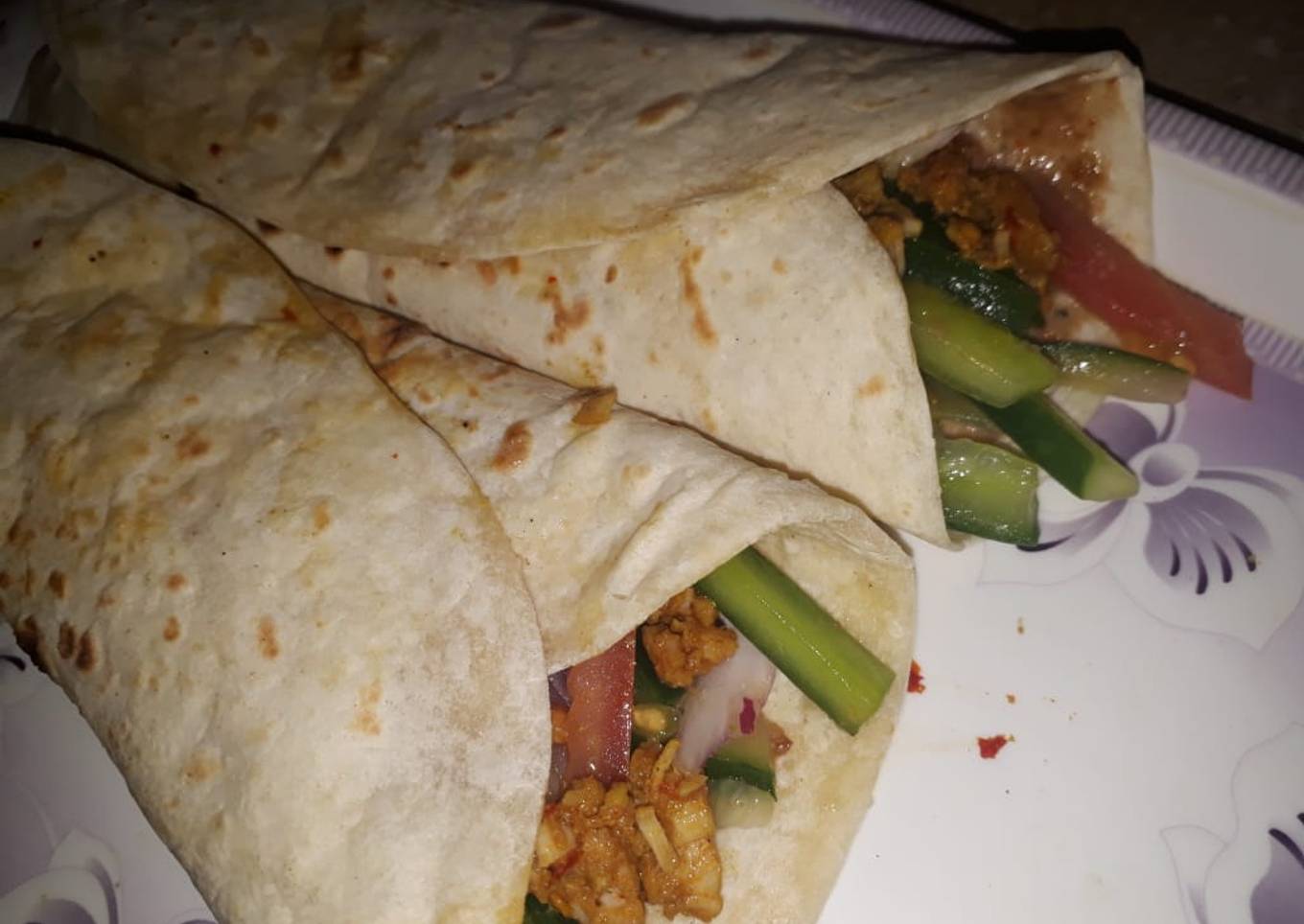 - Phir chicken ko dal dein or phir salad ko dal kar roll kar dein