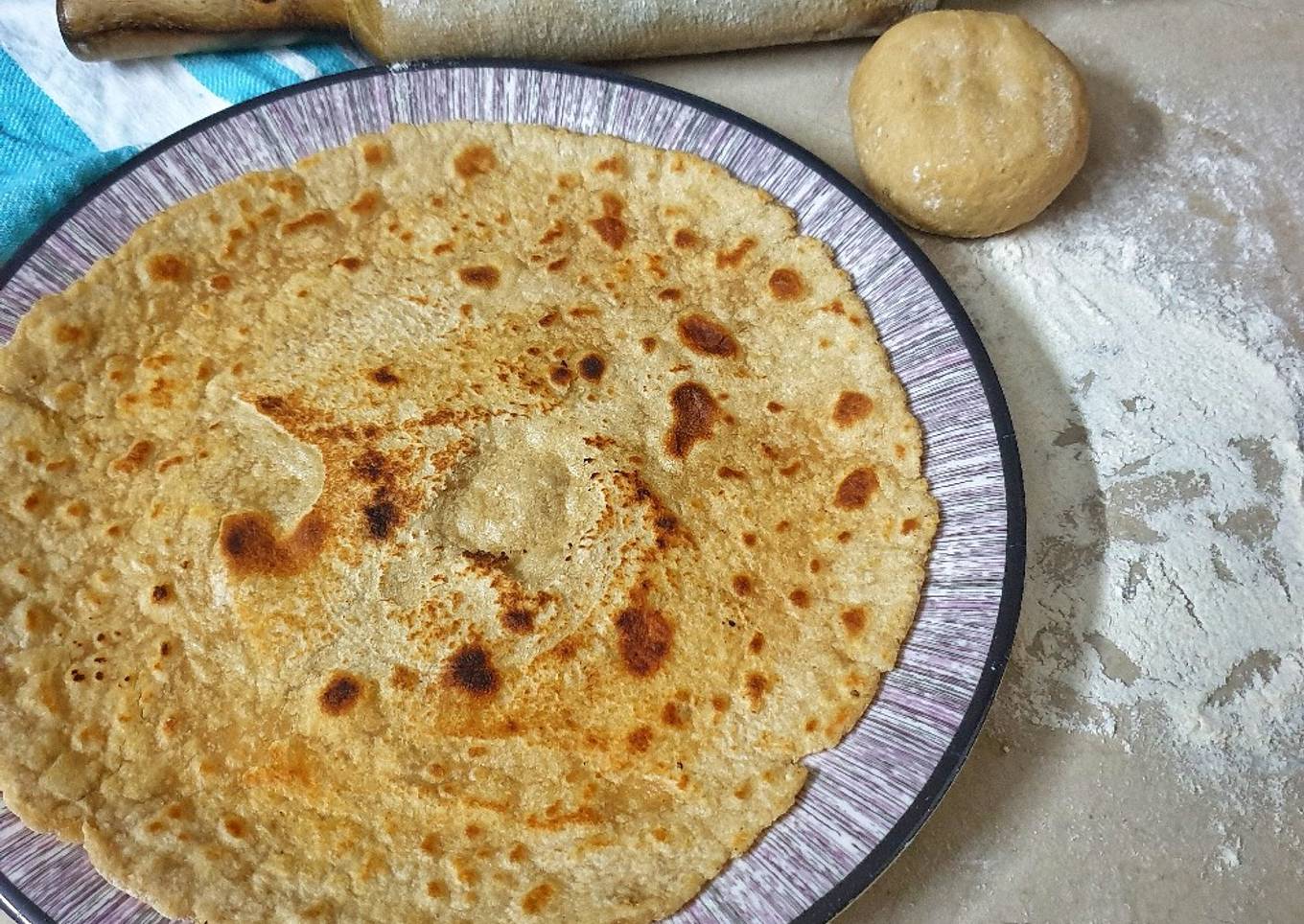 - Roll each ball out as thin as possible, spread butter on it and place that side down on the fry pan or tawa,