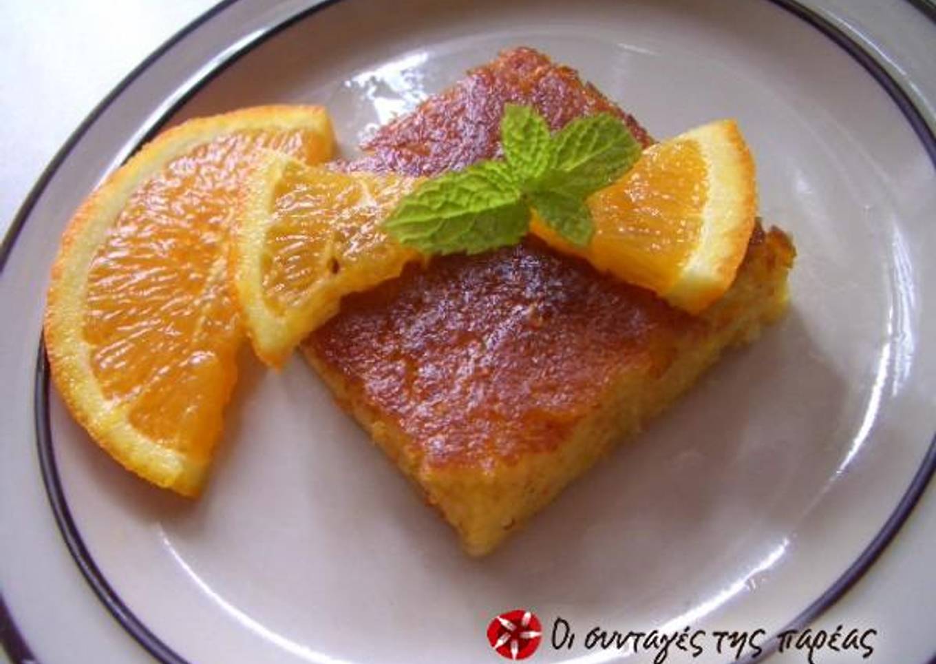 - Meanwhile, prepare the syrup and when the orange pie is baked score it into pieces and pour the syrup over it while it's hot.