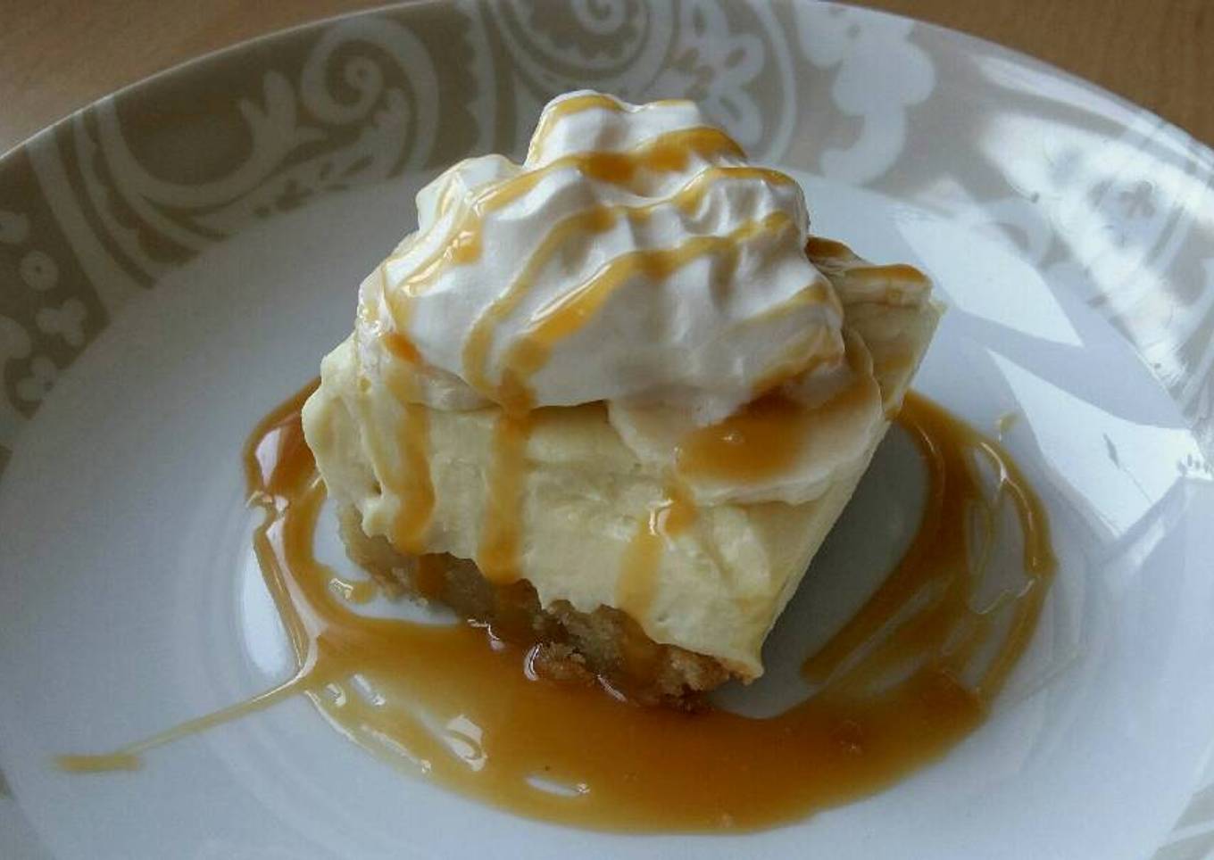 - Pipe on some cool whip and drizzle with caramel sauce